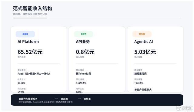 三大板块单干明晰、互相协同。AI Platform援救行业进口地位;API业务极具弹性,快速绽开增量市集;同期,在高价值鸿沟,以Agentic AI看成“价值尖刀”,实现高壁垒的价值深挖和耐久收入锁定。